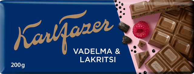 Karl Fazer vadelma & lakritsi suklaalevy 200g Jälkitoimituksessa
