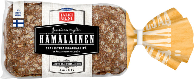 Oululainen Jälkiuuni Hämäläinen Archipelago Oat bread 4pcs 240g, whole grain oat bread is backordered and will ship as soon as it is back in stock.