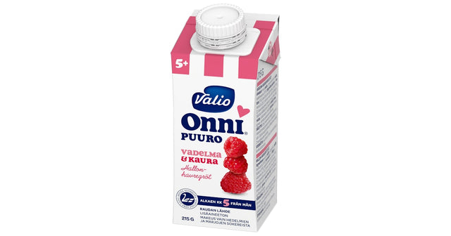 Valio Onni® raspberry oatmeal is a milk-based porridge that is suitable for children's diets from 5 months of age as tasting portions. A delicious combination of the softness of oats and fresh raspberries! It gets its sweetness only from berries and fruits. The protein composition of the milk used in the porridge meets the nutritional needs of children under 10 months of age. The berry-rich and pleasantly soft porridge is UHT-treated and can be stored unopened at room temperature. It is a convenient snack on the go. The porridge is easy to portion from the cap-topped package, even directly onto a spoon. Serve as is at room temperature or warmed on a plate.