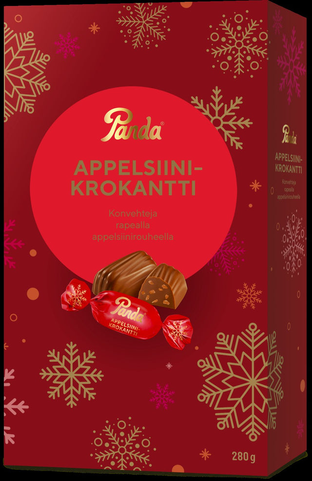 Panda Orange brittle praline is a vibrant blend of real orange and crisp crunch, accompanied by vegan chocolate. Each bite delivers a delicious taste experience that indulges the taste buds.