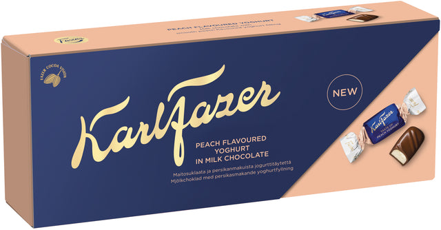In the Karl Fazer Peach Yoghurt praline, soft milk chocolate covers a refreshing peach yoghurt filling that reminds you of summer. Finland’s most-loved chocolate since 1922. Its unique, smooth taste is guaranteed by using only the very best ingredients. Chocolate box make an ideal gift!