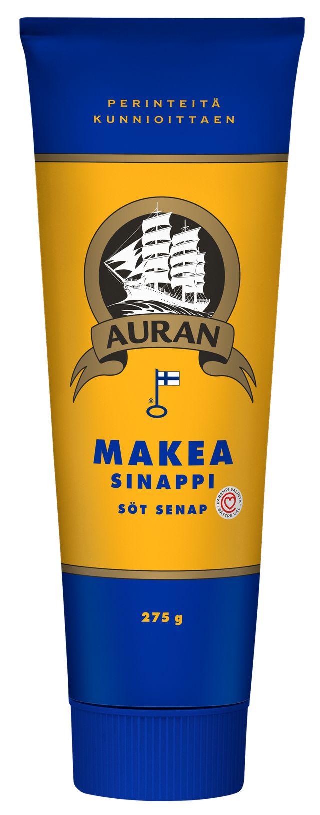 Auran Söt senap är en rejäl senap som tar dig på en söt smakresa genom ett finländskt landskap. Den söta senapen passar perfekt till bland annat ärtsoppa eller en rejäl korv. Auran Senap tillverkas med respekt för traditioner i Åbo i Finland. I det mångsidiga senapssortimentet hittar du säkert din favorit som tub eller flaska.