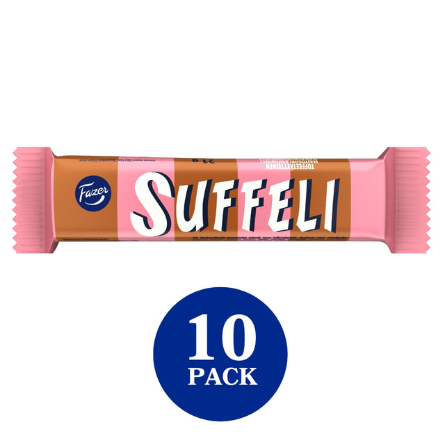 Suffeli on rapea klassikko, joka on ihastuttanut jo vuodesta 1966. Vohvelipatukan maitosuklaan makuinen kuorrute sulkee sisäänsä ihanasti rouskahtavan herkullisen toffeetäytteisen vohvelin. Noudatamme kaakaonhankinnassamme Fazerin kaakaovisiota. Lue lisää www.fazercocoavision.com. Pieni suklaapatukka tehoaa pieneen makeannälkään ja sopii myös välipalaksi.