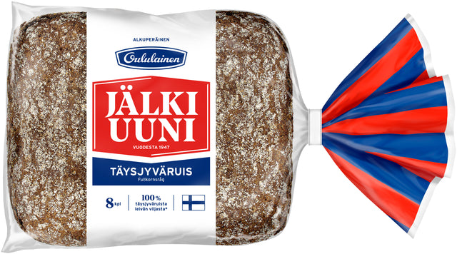 Oululainen Jälkiuuni Fullkornsråg har den unika och kraftiga smaken av råg, som är karaktäristisk för efterugnsbröd, och rejält med tuggmotstånd i lättanvänd form. Oululainen Jälkiuuni Fullkornsråg får sin unika smak och konsistens genom lång gräddning på efterugnsvärme. Avnjut Oululainen Jälkiuuni Fullkornsråg med äkta smör eller gör en näringsrik smörgås med olika pålägg! Bakas i Lahtis av finländsk spannmål.