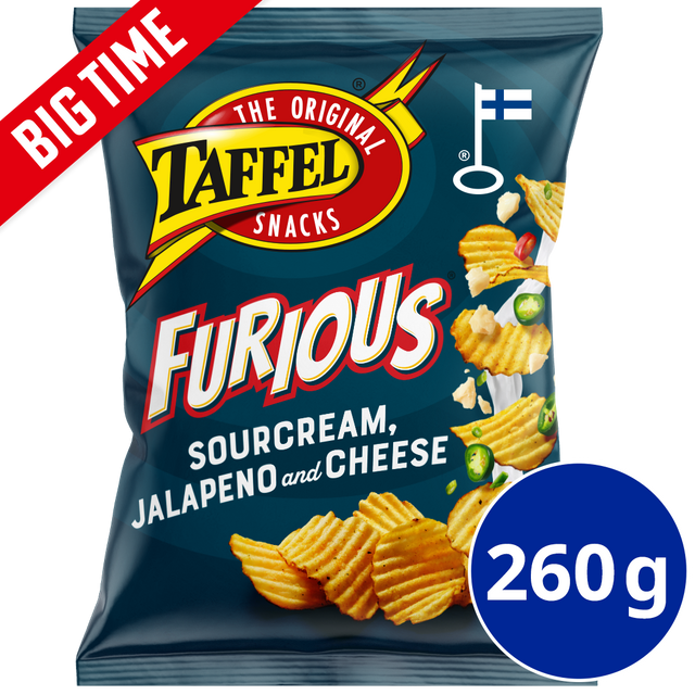 Taffel Furious sourcream chili jalapeno & cheese maustettu sipsi 260g Jälkitoimituksessa