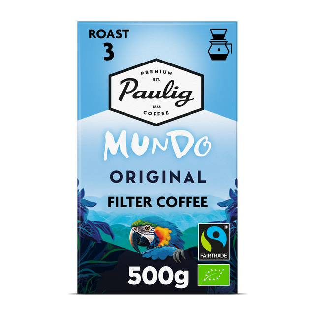 Paulig Mundo Original on suomalaiseen makuun kehitetty korkealaatuinen Reilun Kaupan vastuullisuussertifioitu luomu suodatinkahvi. Kahvin raikkaassa, paahteisessa ja hunajaisessa maussa on vivahteena myös tummaa sokeria. Keskitummapaahto, paahtoaste 3. Paulig Mundon kahvipavut on viljelty luonnonmukaisin menetelmin ilman keinotekoisia lannoitteita ja torjunta-aineita. • Raikas, paahteinen ja hunajainen luomukahvisekoitus Reilun Kaupan sertifikaatilla • Valmistus suodatinmenetelmällä tai pressopannulla