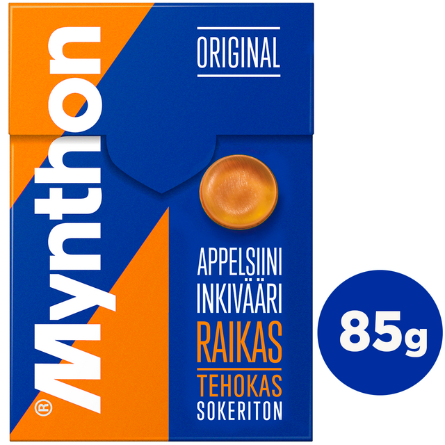 Mynthon Original Appelsiini-Inkivääri sokeriton +C kurkkupastilli 85g Jälkitoimituksessa