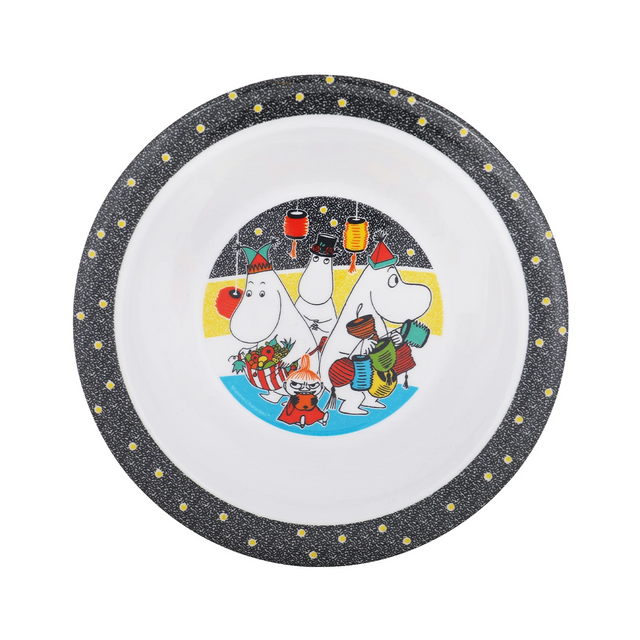 Tunnelmallisen värikäs matala melamiinilautanen, jonka halkaisija on 21,7 cm. Lautasen yksityiskohtaisessa kuvassa Muumilaakson väki valmistautuu syksyiseen sadonkorjuujuhlaan. Sen saa yhdistettyä kauniisti muun Syysjuhla-sarjan tuotteisiin. Mainio lahjaidea, joka tuo iloa ruokapöydän äärelle.