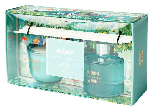 Muumi Magic Meadow presentförpackning 1 st rumsdoft, 1 st doftljus
