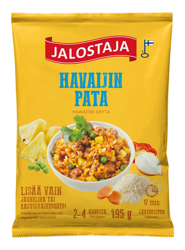 Jalostajas Hawaiisk gryta kommer till undsättning i köket och är enkel att tillreda, även för en oerfaren hemmakock. En oöppnad förpackning håller länge om den förvaras torrt och i rumstemperatur. Jalostajas grytingredienser som tillreds i Finland är en finsk färdigmatsklassiker. Med grytingredienserna tillreder du smaklig hemlagad mat enkelt och snabbt eftersom de behändiga påsarna innehåller alla torra ingredienser som behövs för en måltid. Enkelt, speciellt för nybörjare eller jäktade kockar!
