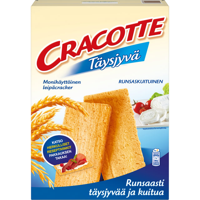 Den fiberrika cracotten är en helt ny typ av smörgåsbakelse som kan avnjutas utan bekymmer, oavsett aptit. Med Cracotte kan du njuta av nästan vad som helst. Oavsett om du gillar salt eller sött, exotiskt eller traditionellt, är det bara fantasin som sätter gränser. Cracotte är perfekt till frukost, mellanmål, fest eller bara som snacks - alltid gott, snabbt och enkelt.
