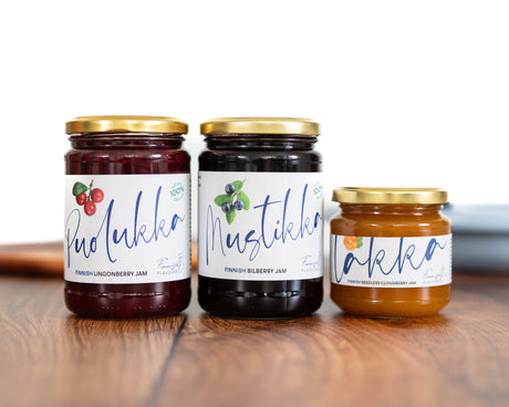 £31.07Enhetspris /Ej tillgängligtFinnish Flavours Suomalainen syltblandning, lingon-, blåbärs- och stenfri hjortronsylt