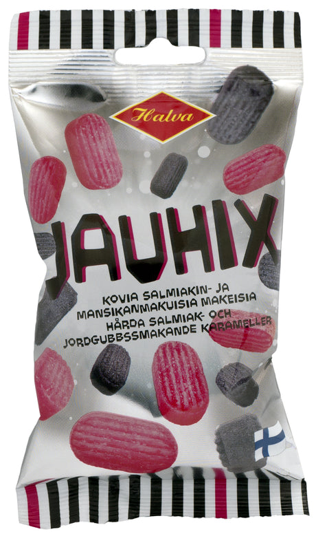 £20.49Enhetspris /Ej tillgängligtHalva Jauhix 100 g hårda godisar med smak av salmiak och jordgubbe