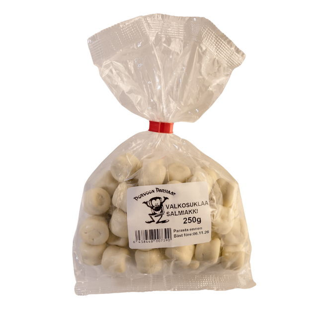Porvoon parhaat Valkosuklaakuorrutteinen salmiakkilakritsi 250g