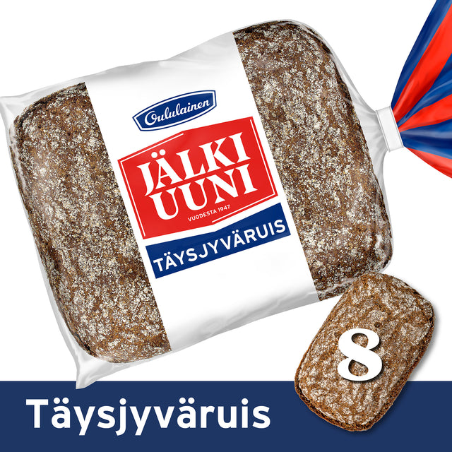 Oululainen Jälkiuuni Fullkornsrye har den unika och starka smaken av råg samt en kraftig struktur i en lättanvänd form. Den unika smaken och strukturen skapas långsamt i eftervärmen av ugnen. Njut av Oululainen Jälkiuuni Fullkornsrye med äkta smör eller fyll den som en näringsrik matsäcksmacka! Bakad i Lahtis av finsk spannmål.