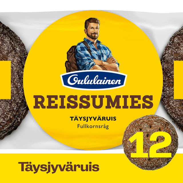 Packa ner ett rejält mellanmål! Detta klassiska rågbröd som varit finländarnas favorit alltsedan 1978 bakas på äkta surdeg. Det ikoniska runda Reissumies-fullkornsrågbrödet ger naturlig energi med sin fylliga smak av råg och lagom mjuka konsistens. Innehåller inga tillsatser alls. 81 % av spannmålen i brödet är fullkornsråg. Bakas i Lahtis av inhemsk spannmål.