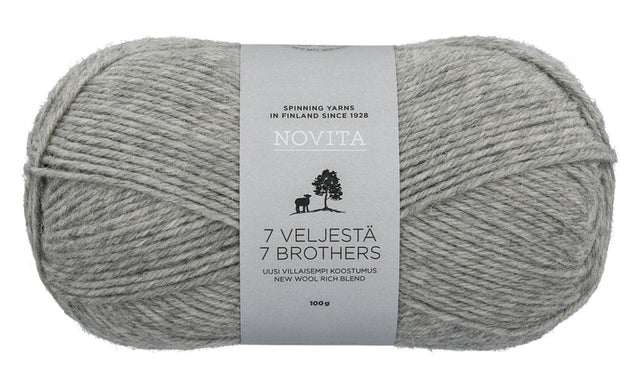 Novita 7 Vänner har i årtionden varit av goda skäl Finlands mest kända och populära garn. Bakom populariteten ligger garnets idealiska sammansättning och rätt twist, vilket gör att garnet passar mångsidigt för olika stickprojekt. Nu har garnets sammansättning fått ett tillskott av ull, vilket gör det fluffigare och ännu trevligare att sticka med. 7 Vänner innehåller 80 % värmande ull och 20 % polyamid, vilket ger garnet hållbarhet. Det mångsidiga garnet passar utmärkt för alla typer av stickningar och accessoarer, särskilt för ullsockor. 7 Vänner-garnet passar alla internationella stickmönster som rekommenderar Aran-viktiga garner. För en M-storlek behövs cirka 600 gram garn och ett nystan räcker till grundsockor i storlek 38. Produkterna kan tvättas i maskin vid 40 grader. Stickor rekommenderas 4, för sockor stickor 3.5. Stickor rekommenderas 5 för Aran-viktiga garner. I ett 100 grams nystan finns det 200 meter garn. Novita 7 Vänner-garn är en Nyckelflaggsprodukt.
