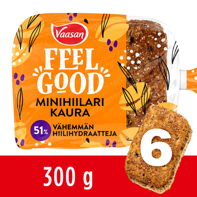 Vaasan Feel Good Minihiilari Havre 300g 6 st lågkolhydrat havrebröd I efterleverans