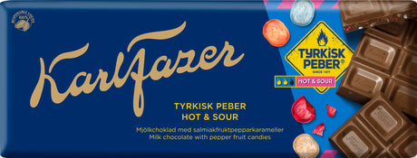 6,50€Enhetspris /Ej tillgängligtKarl Fazer Tyrkisk Peber Hot&Sour chokladkaka 180g
